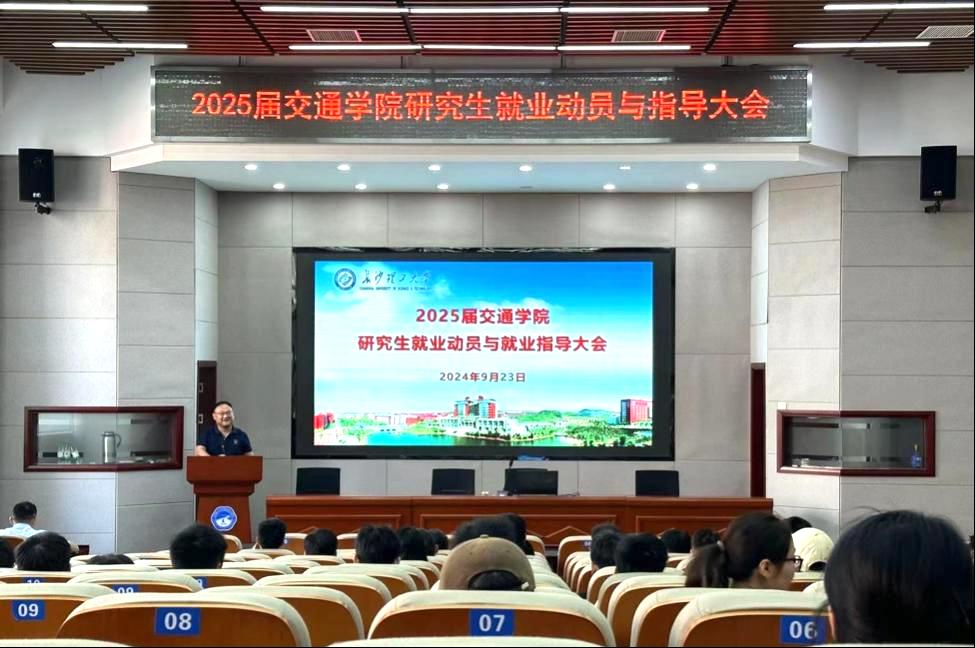 为积极应对当前就业形势的挑战,提高2025届研究生的就业竞争力和求职技能,交通运输工程学院于9月23日在工二B301召开了就业动员大会。院党委副书记任志祥作动员讲话。就业专干李特超作就业指导。研究生辅导员周浩主持。
