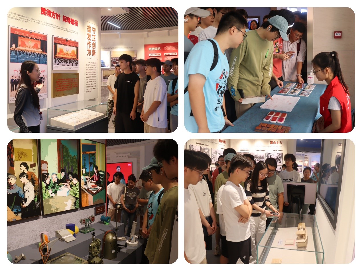 新生们在基地讲解员的带领下,沿着“国之大者”、“材之茂者”、“师之贤者”、“行之实者”四个篇章,仔细聆听讲解员对每一张图片、每一件物件的讲解,认真查看每一段文字说明,全面了解学校在党的领导下的发展建设成就。