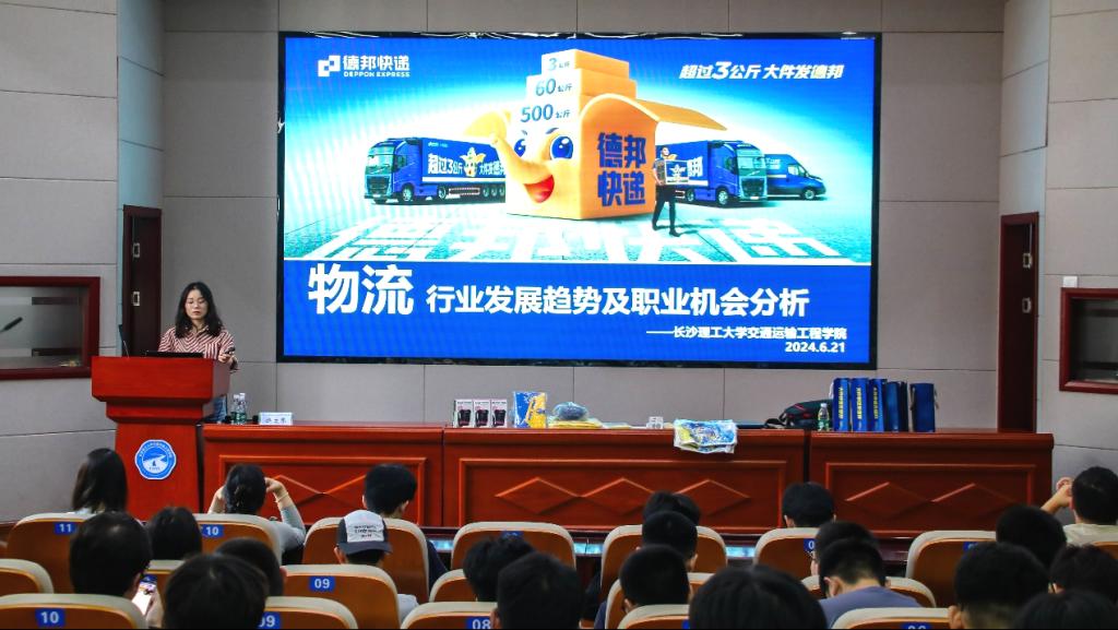 6月21日,伟德betvlctor1946源于英国交通学院于云塘校区工科二号楼B301报告厅举办物流行业发展趋势及职业发展机会报告会。特邀德邦快递人才发展部高级总监饶文琴担任主讲人,交通学院就业专干李特超出席,交通学院80余名交通运输、物流工程专业学生参加会议。