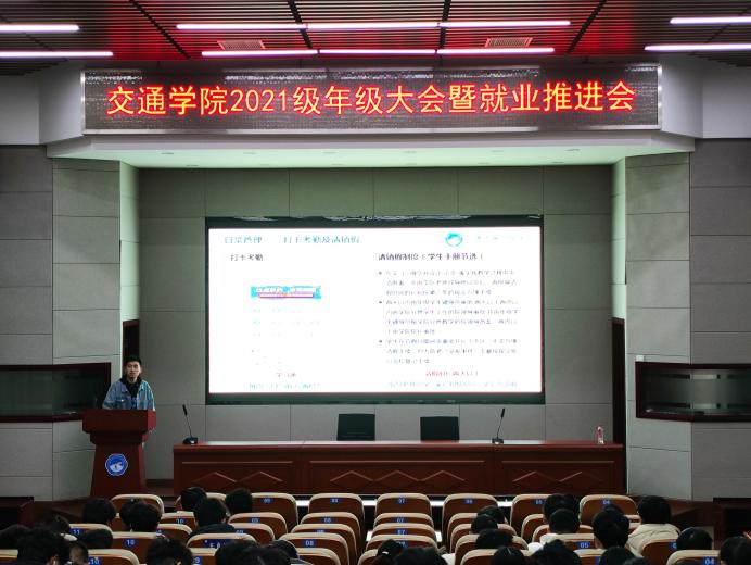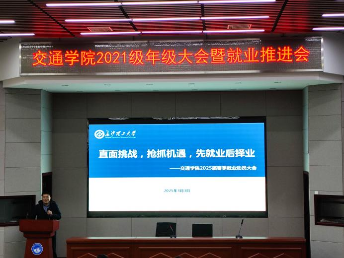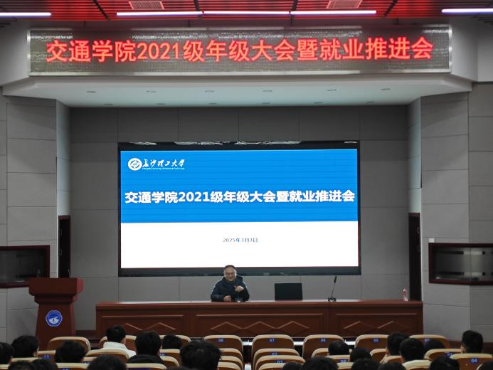 2025年3月3日下午,交通学院在工科二号楼B301会议室召开2021级本科生年级大会暨就业推进会。交通学院党委副书记任志祥,辅导员李特超、史亚杰、肖敏强参会。2021级全体本科生分批次参加。
