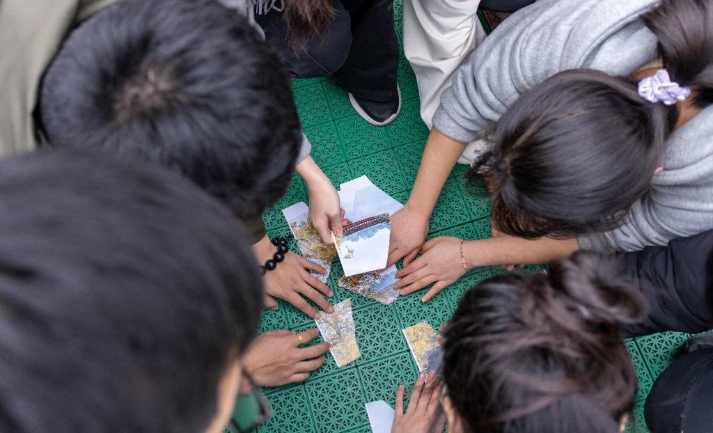 “快来,快来!”伴随着“红马甲”志愿者的呼唤,一个又一个队伍向各个游戏摊位出发。“我认识这个图片上的建筑!是遵义会议的会址。”24级的刘晶同学在遵义会议主题拼图游戏中这样讲。正是她平时对会议历史的关注了解,才带领小队用最少的时间完成了任务。