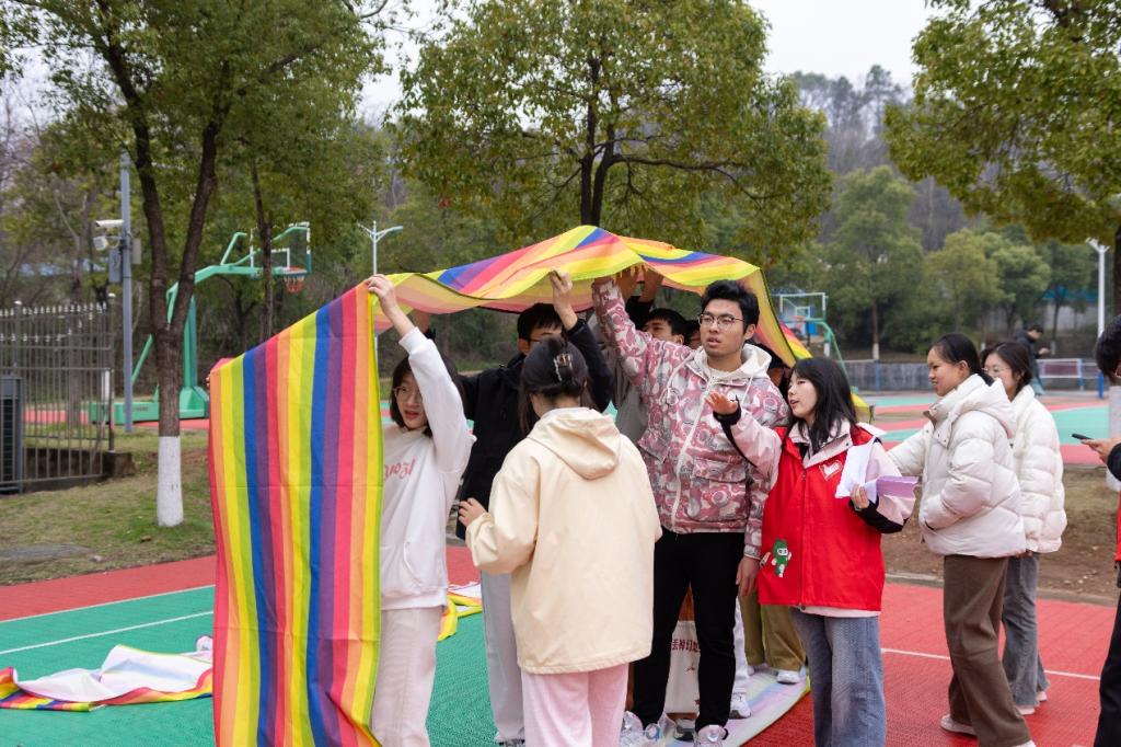 不管是合作障碍跑、猜词游戏,还是大家一起踩“风火轮”、排序历史事件答题,每一个“青苗”团队悉心设计的游戏都蕴含一段红色峥嵘岁月,都展现了革命先烈们开创新中国、打拼新天下的艰难岁月。“希望同学们能从游戏中汲取信仰之力、领悟智慧之力、获取坚韧之力!”团队成员毛桂如是说。