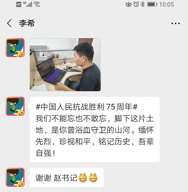 观看纪念活动后,同志们积极交流各自感受,党员同志们深刻体会到,75年前的伟大胜利,浸透着无数仁人志士的鲜血与生命,开辟了中华民族伟大复兴的光明前景。大家纷纷表示,75年后的今天,我们要更加坚定信念与担当,铭记历史、缅怀先烈、珍爱和平、开创未来,为世界更美好的明天贡献力量。(文图/赵锋军 审/孔伟红)