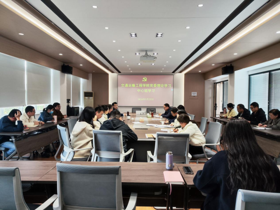 3月25日下午,交通学院党委理论学习中心组在工二B413传达学习习近平总书记在湖南考察时的重要讲话和指示精神,院党委书记成华主持,院党政班子成员、各教工支部书记、行政支部全体党员参加。