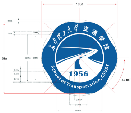 4、内部中心运用阴阳对比,融合交通的道路,千里之行始于足下;四个短线,对应四个一级学科,无穷远代表着学科发展无限的可能;院徽中间道路也是代表学院交通特色、道路优先的办学特色。