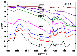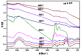 图4玉米秆(a)和松针(b)焦炭的FTIR谱图