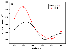 图5 玉米秆(a)和松针(b)焦炭的拉曼光谱谱图