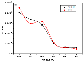 (1)本项目的研究发现,生物质热解过程中,由于挥发分释放导致有机官能团含量较低,相应导致焦炭的拉曼光谱信号减弱,各子峰面积之和减小。这在公开文献中未见报道,属于创新性的研究成果。