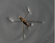 图1 自然界中的超疏水现象[1]:(a)、(b) 不沾水的荷叶,(c)、(d) 水面上健步如飞的水黾。