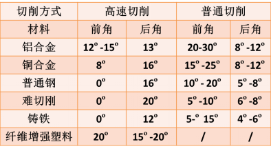 干式切削由于没有切削液的冷却、润滑和辅助排屑等作用,切削温度急剧增高,干式切削过程中刀具和工件之间摩擦增大以及刀具磨损加剧,这就对切削刀具提出了更高的要求,表2对高速切削与普通切削刀具角度进行了对比,用于干式切削的刀具需具备:良好的耐热冲击性和抗粘结性;较高的红硬性和热韧性;良好的耐磨性;切屑和刀具之间的摩擦系数要尽可能小;刀具形状要保证排屑流畅且易于散热;刀具应具有更高的强度和耐冲击韧性等优异的综合性能。目前,用于切削制造工艺的刀具主要有立方氮化硼(CBN)刀具、陶瓷及金属陶瓷材料刀具、涂层硬质合金刀具、金刚石(PCD)刀具及超细颗粒硬质合金刀具等,但因其或存在红硬性差、或存在耐磨性不足等缺点,难以满足干式切削对刀具红硬性、耐磨性等的综合性能需求。因此,设计和开发新型综合性能优异的刀具材料,满足干式高速切削对刀具的综合性能要求,是促进干式高速切削技术发展的一项关键技术。