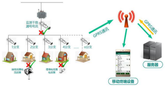 首先,采用采集器内置的穿心式电流互感器采集整个线路的漏电电流信号,该信号通过一定的滤波、运算、放大处理后送入到MCU主芯片进行高速采样读取波形,并通过一系列运算后,算出这一瞬间周期的漏电电流数值。然后MCU将信息比较、打包后通过GPRS模块的无线通道传至云端服务器。最后,通过各手持移动终端访问云端服务器获取漏电采集数据,并发送控制指令至台区负责人,实现故障隔离和排除漏电点。
