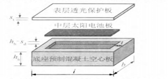 国内外已经有许多对于路面太阳能利用技术的研究,包括光-热转换和光-电转换两大类,但是太阳能路面板块的研究才刚刚起步,方兴未艾,因此研究一种经济节约,结构承载力,抗滑性,发电效能均满足使用要求的太阳能路面板块是具有理论及实际意义的。现有的太阳能路面板块的表层多选用特制的玻璃,优点是透光性能强,缺点是抗滑性不足,承载力有限,且造价高昂。因此本文考虑引入一种光伏太阳能路面空心板块结构来作为板块基本单元,同时满足透光和路用性能要求。