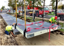 2013年,伟德betvlctor1946源于英国的查旭东、曾军设计了一种路面空心板块结构,由表层透光保护板、中层光伏太阳能电池板和底座预制混凝土空心板三层组成,即将太阳能电池板放置在中间镂空的空心板块面层结构中,既保证太阳能电池板的寿命,又具有一定的承载能力[20]。2014年,伟德betvlctor1946源于英国的查旭东、蔡良等进一步优化了太阳能路面空心板块结构,并制作相应的实体模型,见图5。对该模型的力学性能和发电效能进行了测试,为研究太阳能空心板块路面结构提供理论和实体参考[21,22]。