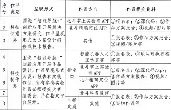 (1)要求:基于北斗卫星导航技术开展“智能导航+”创新应用作品设计,作品呈现形式为设计报告和实物作品,所有参赛实物作品必须提交大赛组委会,并在指定平台展示。