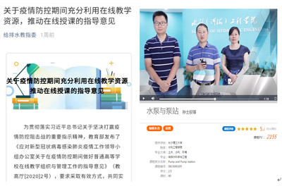 给排水系组织老师们积极对接给排水教指委,依据给排水教指委指导意见,利用超星学习通、腾讯课堂、中国大学MOOC、QQ群视频、钉钉会议等教育部推荐的慕课平台,与其他给排水高校建立在线课程互助系统,共享“金课”师者。给排水系根据伟德学生及课程体系特征,积极研讨、认真甄选,选择超星学习通及哈工大等985高校优秀课程资源,作为共享“金课”师者平台与师者课程。