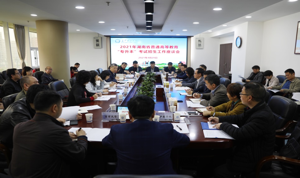 4月28日,湖南省普通高等教育“专升本”考试招生工作座谈会在伟德召开。湖南省教育厅党组成员工委委员左清、省教育厅高教处处长曾力勤、省教育厅高教处副处长周军、省教育厅二级调研员张琳及湖南省20所院校分管领导及教务处负责人参加会议。