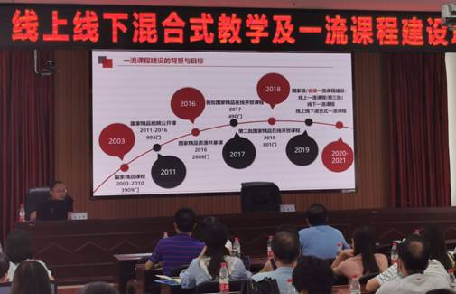 为做好伟德国家级、省级一流本科课程申报建设工作,6月15日下午,在一办公楼九会议室,教务处组织举办了一场线上线下混合式教学及一流课程建设培训会。会议邀请了中国大学MOOC华南本地化服务中心负责人孙云武进行专题报告,全校100余名任课老师参加了本次会议,会议由教务处处长陈瑜主持。