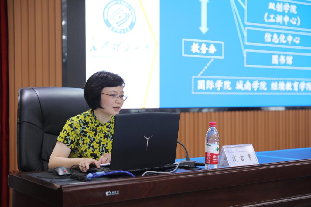 教务处处长陈瑜对学校教学管理系统、教务处机构设置以及校院两级教务管理职能进行了详细介绍,围绕专业建设、课程建设、教材建设、教研教改等工作,从工作现状、制度建设、文件要求与工作流程等方面进行了全面解读。她强调要创新管理理念、加强队伍建设、完善激励机制,在遵循高等教育基本规律基础上,利用现代科学技术手段和管理方法,建立教学管理决策、教学情况反馈及教学过程监控系统,对动态的、全程的教学活动进行有效管理。