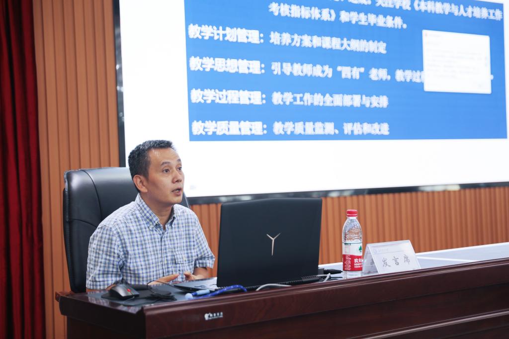 最后,副校长刘朝晖总结发言。刘校长深入分析了国内外高等教育发展趋势,指出在高等教育步入普及化发展的新阶段,新一轮科技革命与产业变革给高等教育改革带来了新的机遇与挑战,同时对高等学校人才培养质量提出了新要求。他指出,本科人才培养任重道远,教学管理人员要加强学习,提高政治站位,充分把握、理解新时代党的教育方针,学习贯彻全国教育大会精神,坚持立德树人;深入了解新高考改革对高校教学的影响与冲击,学习理解新一轮《本科教学审核评估指标体系》内涵。他告勉管理人员要深入调查研究、做好本职工作,正确处理教与学的关系,为实现伟德“十四五”发展目标和百强大学建设目标,培养高素质复合型人才努力奋斗、开拓创新。