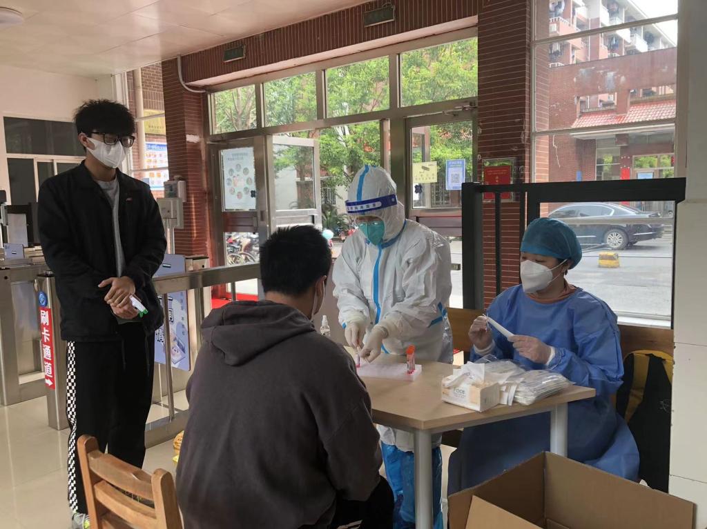 4月份以来,教务处党支部9名党员同志投身学校抗疫一线开展志愿服务在学校核酸检测点,协助医护人员开展核酸采集信息扫码、流程指引、人员疏导、秩序维护等相关工作。在校门口,教务处党员干部们坚守应急值周岗位,督促教职工佩戴口罩、扫描场所码有序进入校园努力为疫情防控工作贡献力量!