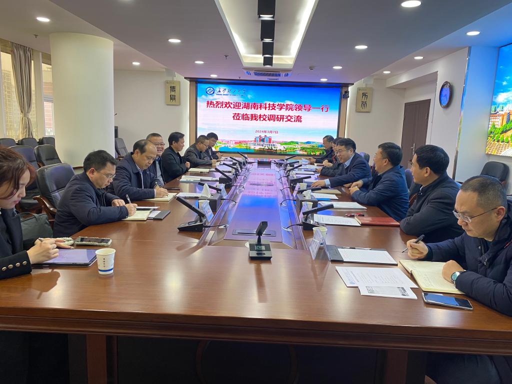 3月7日,湖南科技学院党委委员、副校长何福林等一行来伟德调研,双方在云塘校区一办六会议室进行座谈。学校党委委员、副校长钱国平,教务处处长张军辉、信息化建设管理处处长王威、教务处副处长彭晖、高教改革与质量评价研究所副所长贺晖、资产管理与实验室建设管理处副处长唐中勇参加本次会议。会议由张军辉主持。