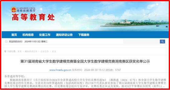 同时,近日,湖南省教育厅高等教育处发布了“第31届湖南省大学生数学建模竞赛暨全国大学生数学建模竞赛湖南赛区获奖名单公示”的通知,伟德在第31届湖南省大学生数学建模竞赛暨全国大学生数学建模竞赛湖南赛区的比赛中获得一等奖2项,二等奖4项,三等奖7项。
