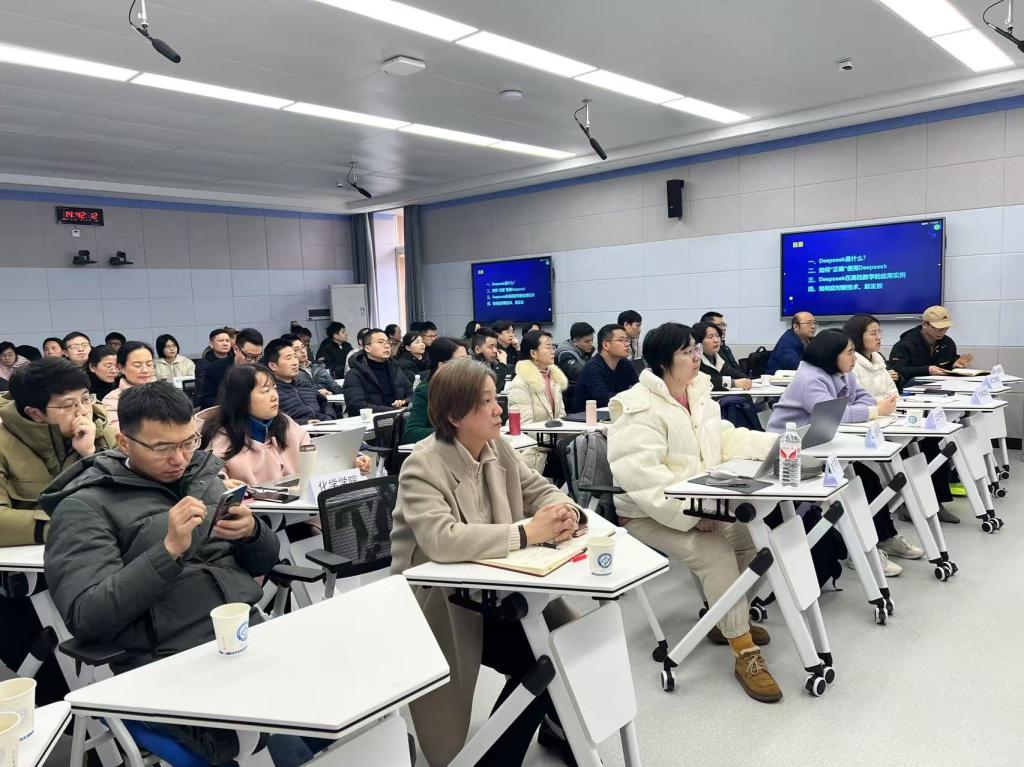 为进一步推动 AI 技术与教育教学的深度融合,帮助学校教师掌握前沿教学工具,提升教学水平,3月6日下午,学校举办“DeepSeek+AI工具赋能高校教师教学”专题培训会。培训采用“线上直播+线下观摩”双轨模式,主会场设于云塘校区综合教学楼C502。活动期间,全体教师不仅能够同步观看直播,还能参与云端互动,充分交流学习心得。直播结束后,培训平台特别设置了直播回放功能,方便那些因时间冲突未能参加直播培训的教师随时回看,确保每一位教师都有机会深入了解和掌握培训内容。。