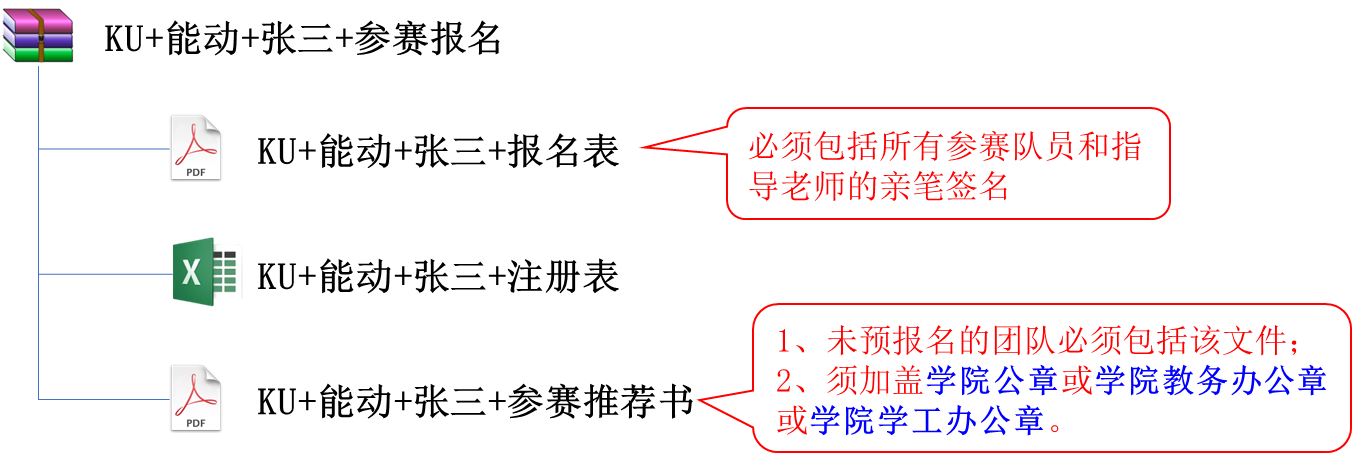 ① 《报名表》中必须有所有成员和所有指导老师的手写签名,然后制作成PDF文档;