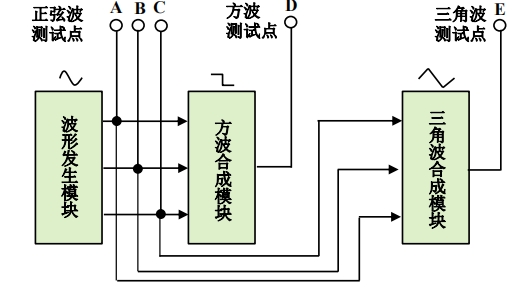 设计并制作一个电路系统,能够产生多个不同频率的正弦信号,并将这些信号再合成为近似方波和三角波信号,并测量信号的幅度、频率等参数,参考系统功能框图如下图所示。
