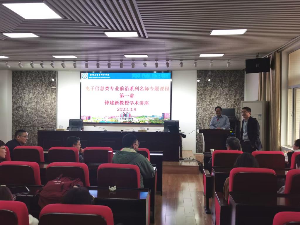 物理与电子科学学院“专业前沿系列名师专题课”于3月8日15点30分在云塘校区理科楼B-413拉开序幕。湘潭大学钟建新教授应邀来伟德作为课程第一讲的主讲人。学院党委书记张国强、副院长(主持工作)张卫兵、副院长范志强、校督导团团长唐立军教授,与电子系的师生们共计120余人一起聆听了专题课程。专题课由物电学院副院长(主持工作)张卫兵主持。