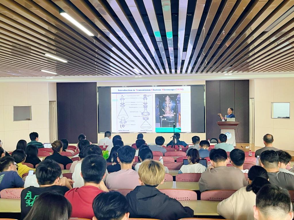 课程伊始,黄建宇教授通过讲解电子显微镜基本原理介绍了最先进的球差校正电镜、隧道扫描电镜,展示了利用原位TEM技术观察二氧化锡纳米线膨胀在充放电过程中的形貌变化,以动态图的形式使同学们直观感受电子显微镜下的微观世界。讲座中,黄建宇教授介绍了原位TEM研究固态锂硫电池在高温下的充放电行为,随着室温下锂化过程的进行,硫化锂从非晶态/纳米晶转变为多晶态,高温下硫化锂的析出比室温下更完整。黄建宇教授团队发现一种基于原子力显微镜—环境透射电镜(AFM-ETEM)原位电化学测试平台可观察到在循环过程中的锂枝晶生长的微观机制,当锂枝晶生长到一定程度时可穿透固态电解质,为实现抑制锂枝晶生长提供可行性方案。最后,黄建宇教授就学院老师、学生提出的相关问题进行了更深层次的交流和讲解。