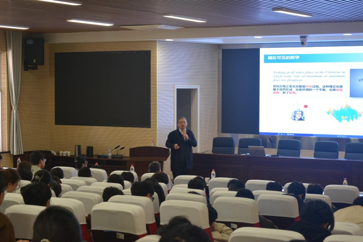 讲座中,韩德仁教授从一个体现数据价值的调查问题开始,讲到压缩感知、矩阵完备化、从人工智能到神经网络等问题对应的优化模型及应用。接着,韩教授介绍了航空航天、图像处理、经济社会、信息通信中的优化问题,对不同类型的优化模型如线性优化、非线性优化、非光滑优化、非凸优化和主要的算法进行了介绍。对非线性、非光滑、非凸问题,韩教授为同学们介绍了用线性逼近非线性、光滑逼近非光滑、凸逼近非凸的思想。
