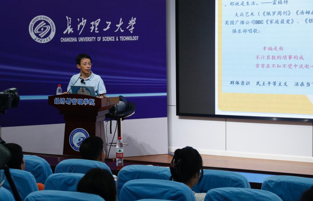 2023年5月26日下午,我院文化与传媒前沿系列讲座在金盆岭校区12号教学楼报告厅如期举行。暨南大学新闻与传播学院副院长曾一果教授应邀为我院师生带来题为“文化、生活与感觉结构:伯明翰学派的媒介文化研究”的学术讲座,学院院长刘建新教授主持,副院长周云鹏、魏桃初、戴钰副教授及22级全体研究生、本科生参加了讲座。