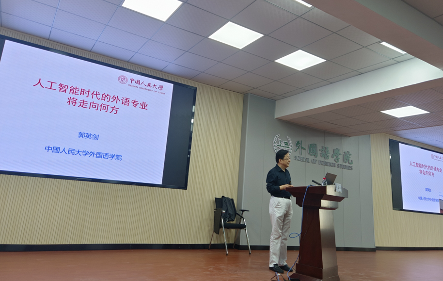 最后,由段胜峰院长对讲座进行总结。段院长对郭教授表达了诚挚的感谢,也对大家提出了殷切的期望。他鼓励大家对专业学习和未来发展充满信心,希望大家提升外语核心素养,不断自我完善,智慧地面对智能时代。讲座在热烈的掌声中圆满结束。