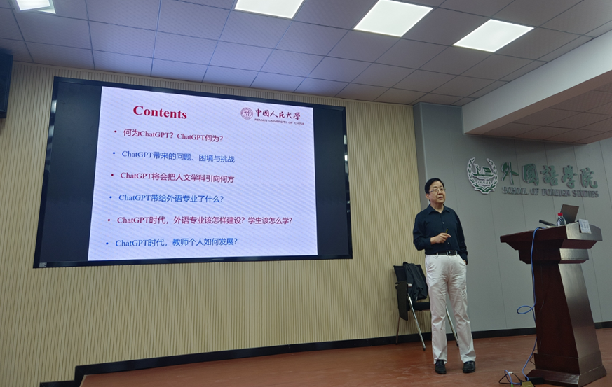 郭英剑教授以ChatGPT为例,以其亲身经历从六个方面阐述了人工智能时代外语专业将面临的挑战及应对措施,依次为:1.何为ChatGPT?ChatGPT何为?2.ChatGPT带来的问题、困境与挑战;3. ChatGPT将会把人文学科引向何方?4. ChatGPT带给外语专业了什么?5. ChatGPT时代,外语专业该怎么建设?学生该怎么学?6. ChatGPT时代,教师个人如何发展?