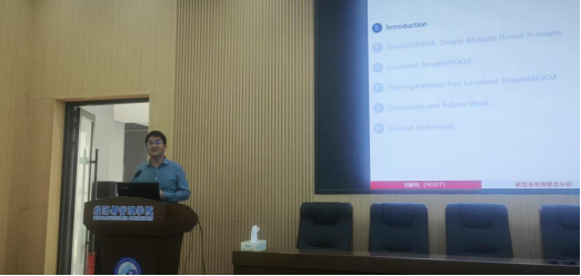 刘新旺教授以多核聚类算法为主题,介绍了其课题组最新研究成果,包括SimpleMKKM融合聚类框架及其相关拓展。在报告中,他首先介绍了与常见min-min/max-max聚类算法不同的创新min-max模型,以及用于解决该模型的新算法,确保了获得的解具有全局最优性。这一模型的优势在于,它不但可在不同应用中展现出卓越的聚类性能,而且无需使用超参数。随后,刘新旺教授以SimpleMKKM模型为基础,进一步引申出核矩阵局部对齐思想在SimpleMKKM算法中的应用,并介绍了无参的样本自适应Localized SimpleMKKM算法。在报告结尾,他强调了这些方法的重要性和潜在应用领域,分享了相关代码的链接以供师生们进一步学习。