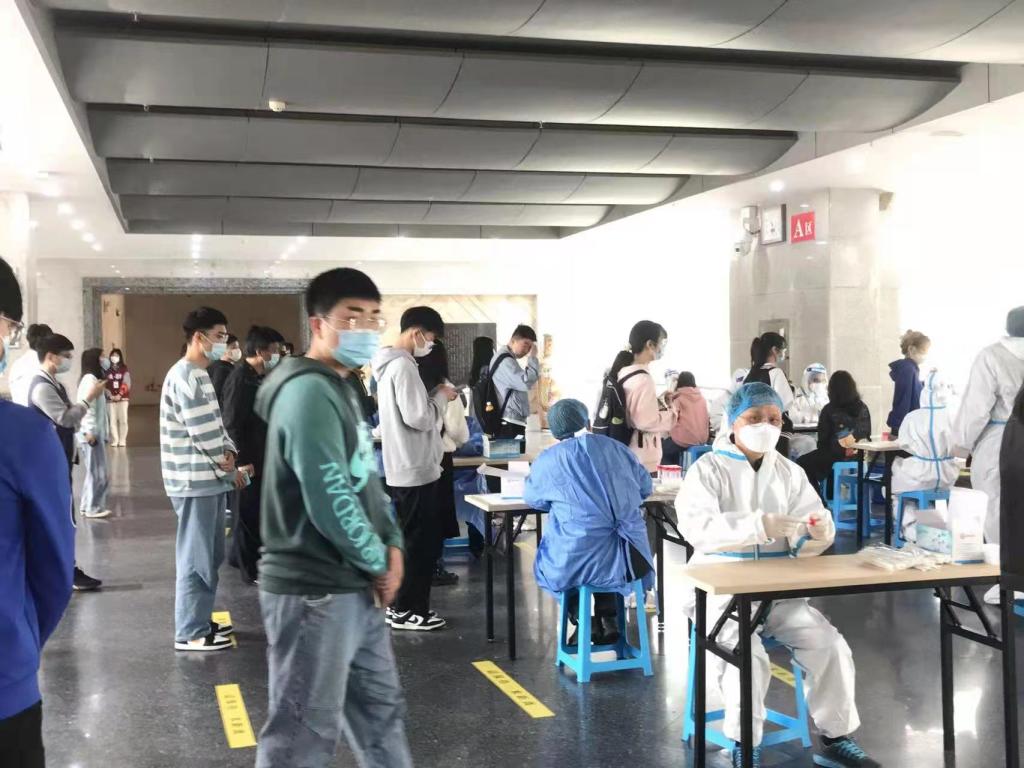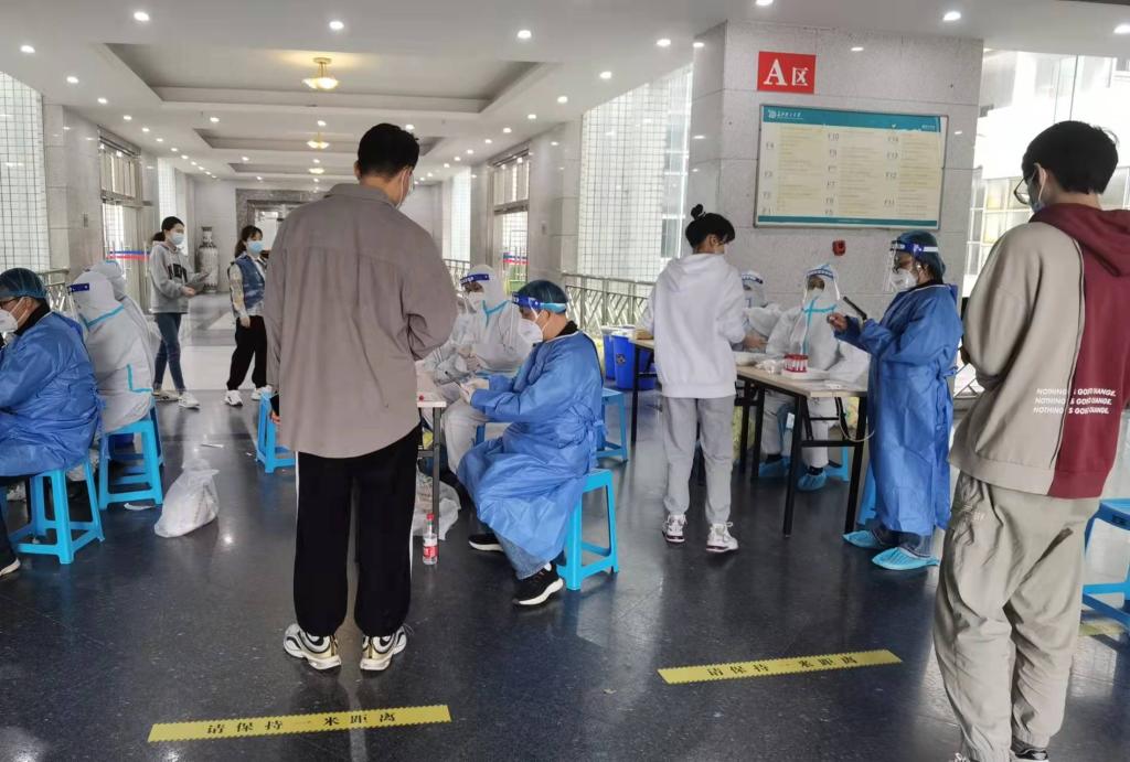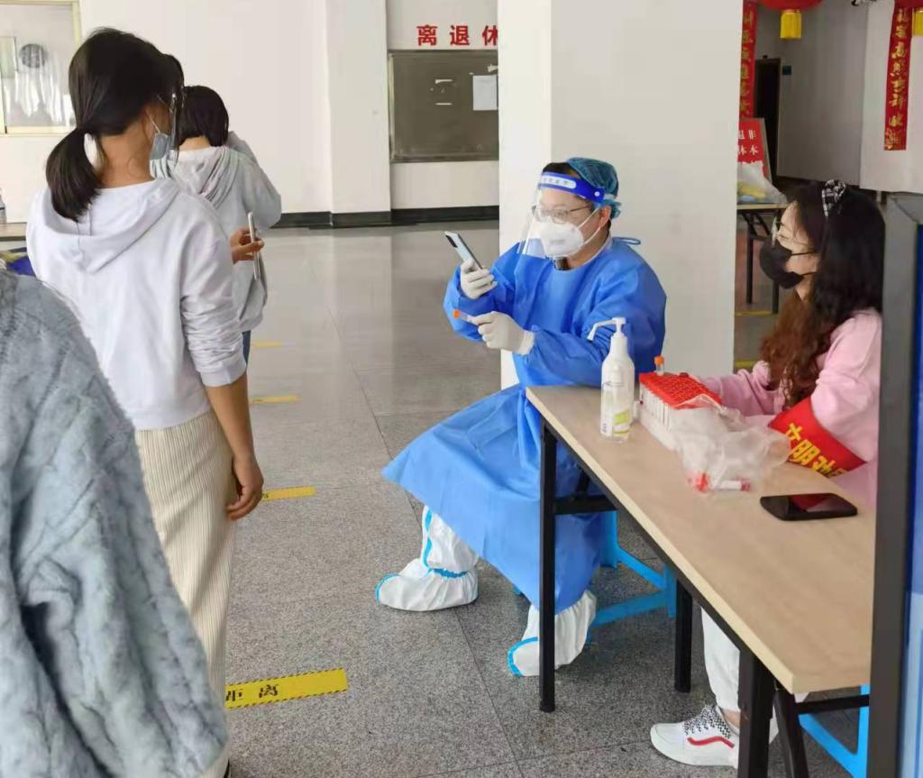 在检测现场的一个信息核对点上,支部书记陈会芳已参与几次,他总是说住在学校宿舍里,没有什么后顾之忧,可以为疫情防控多贡献力量。