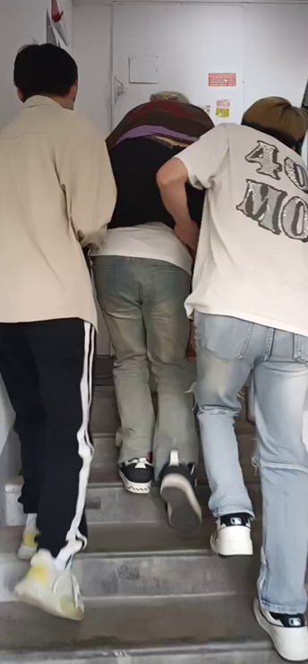 2023年4月10日中午,继续教育学院新思维教学部土木专业X2101班胡靖坤、陈卓宇同学在去南苑快递站途中,碰见一位杵着拐杖的老奶奶,行走十分不便。询问得知,她住在南苑教职工宿舍21栋。陈卓宇同学二话不说,就将老奶奶背着上楼。旁边的同学看见了,也一起帮忙。经过胡靖坤、陈卓宇等同学的共同努力,把奶奶平安送回了家里。