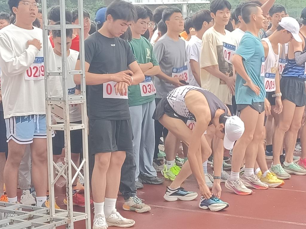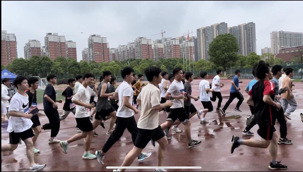 随着信号枪声响起,男、女分组先后出发。男生不断挑战自我,坚韧不拔,把握节奏,较好地释放速度和体能,跑完全程。
