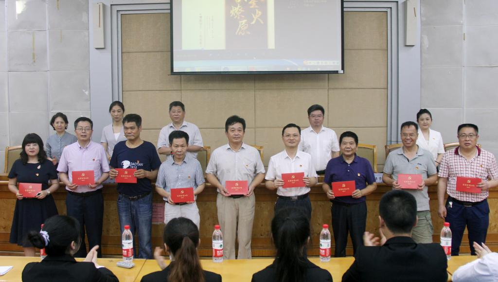 在何纯芳带领下,新党员举行入党宣誓仪式,老党员重温入党誓词,在党旗下接受心灵的净化和洗礼。