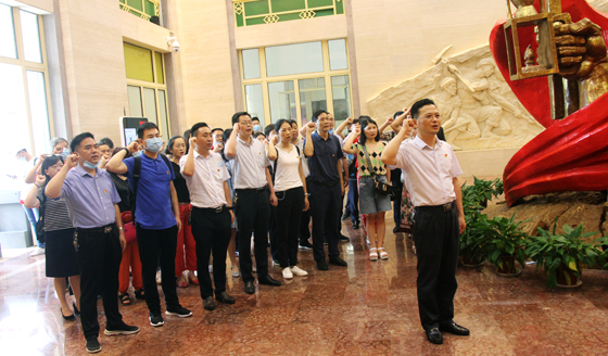 进入纪念馆,全体党员重温了入党誓词,面对鲜红的党旗,接受了理想信念教育,进一步增强了作为党员的责任感和使命感。接着,大家满怀敬仰之情参观一件件历史文物和展图,仔细聆听讲解员系统介绍从1921年到1930年,毛泽东、刘少奇、李立三等老一辈无产阶级革命家,把马克思列宁主义与安源工人运动具体实践相结合,建立党、团、工会组织开展武装斗争的工农运动史。大家仿佛也走进了那段革命历史和激情燃烧的岁月。