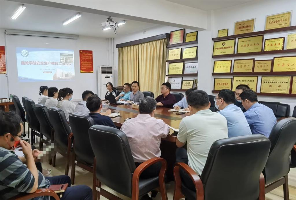 5月4日下午,在15教三楼会议室继教学院召开了关于开展安全生产宣传教育工作会议,会议学习传达习近平总书记重要指示精神及关于安全生产的重要论述、省教育厅近期有关文件精神; 观看安全生产视频《生命重于泰山》;落实学校相关要求,切实做好学院安全生产教育工作。会议由何纯芳书记主持,院领导、各部门负责人和合作机构负责人现场参加,其他教职员工参加腾讯视频会议。