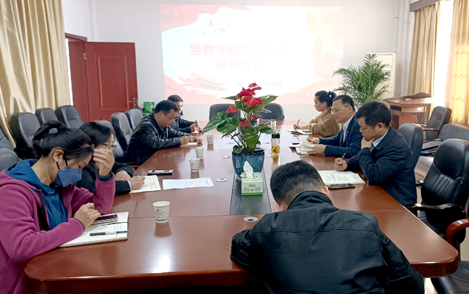 2023年11月28日,继教学院在15教三楼会议室召开意识形态分析和研判会议。党总支副书记谢士成、副院长向英以及党政办、学工与后勤保障部、本部助学中心等部门负责人参加了此次会议,会议由学院党总支书记何纯芳主持。
