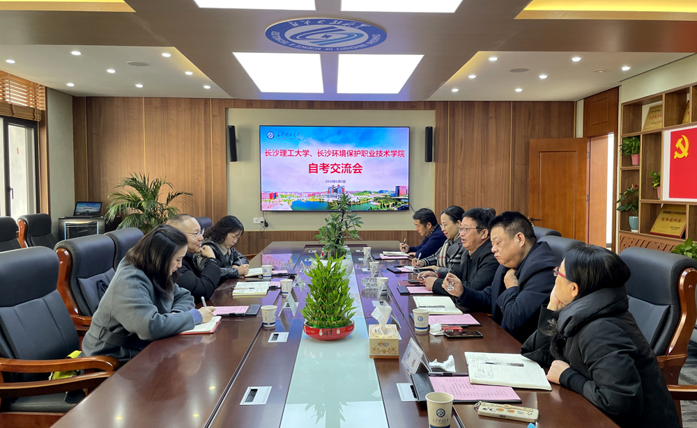 2024年1月3号上午,在金盆岭校区15教四楼会议室,长沙环境保护职业技术学院毕军平副校长、继教院谌桂君院长、继教院何晓敏主任一行,来伟德进行自考工作经验交流。伟德继教院院长邹兴平、副院长谢朝华及自考部相关人员,与来宾进行了座谈。