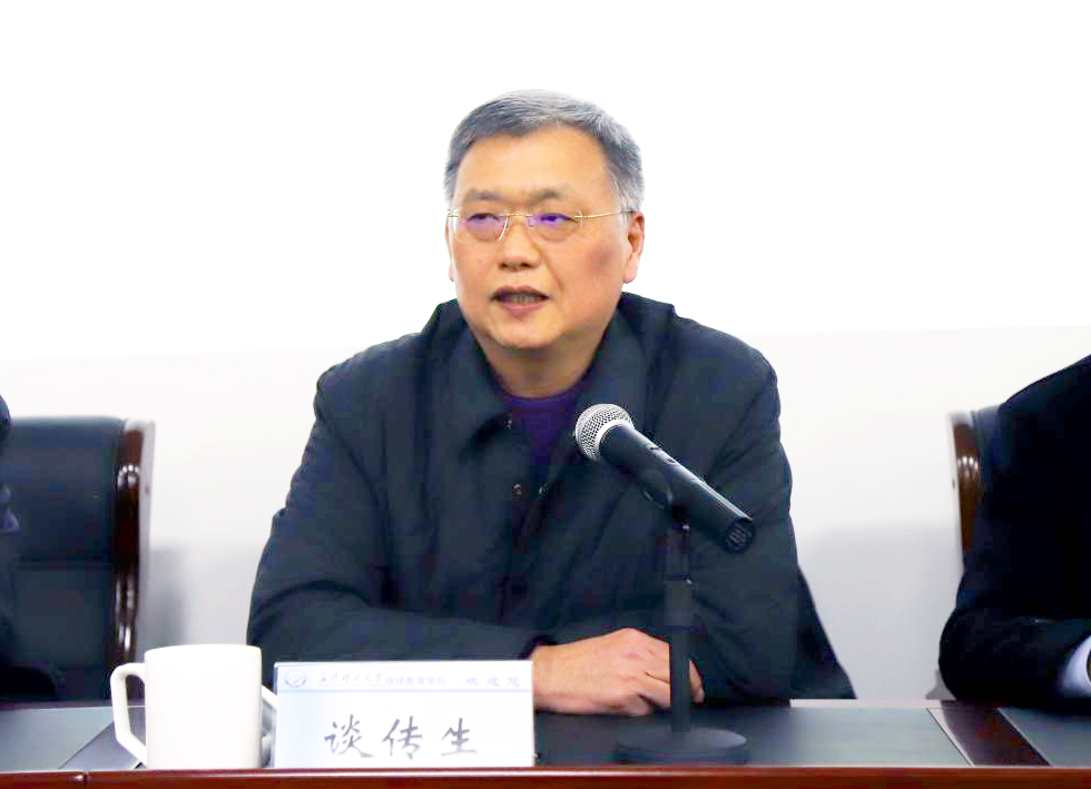 谈传生副校长代表学校党委阐述了此次继续教育学院干部调整的背景和意义,希望全体教职工在学院新党政班子的领导下,敬畏岗位,敬畏职责,继续弘扬继教学院的做事文化,讲担当,讲奉献,巩固既有优势,开拓新的业务领域,实现学校继续教育的高质量转型发展。谈传生副校长还就高等教育改革发展的新形势下,如何支持、配合学校的百强大学建设目标冲刺与高水平研究型大学的建设发展,提出了明确要求:一是继续保持办学初心,坚守立德树人的根本任务,始终把提高教育质量放在首要位置,同时激发继续教育的办学活力;二是加强对继续教育的政策研究,在学历继续教育方面着力提升教育层次,不断强化和提升内部治理能力,加强对教学部学生教育和招生工作的统筹管理。
