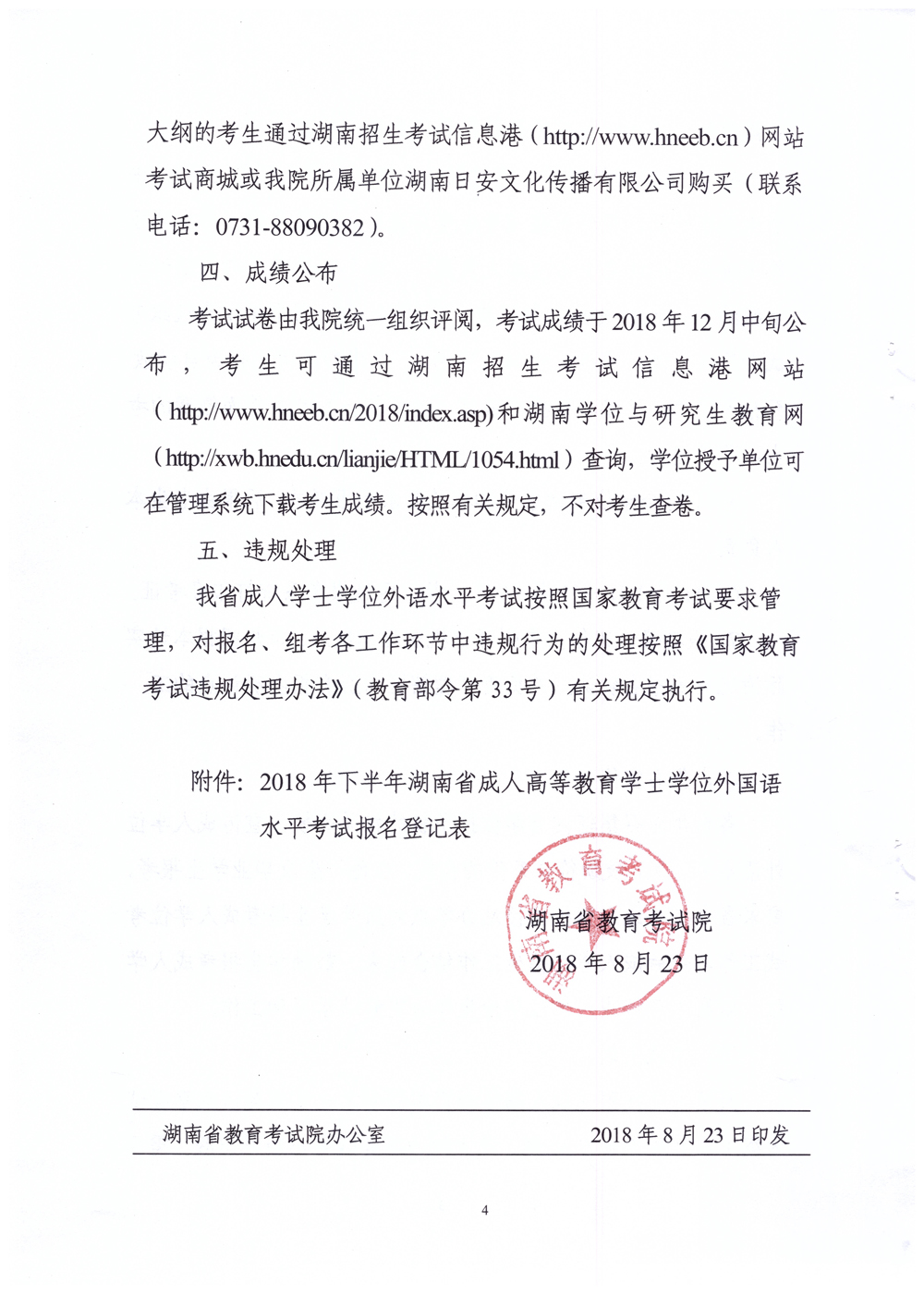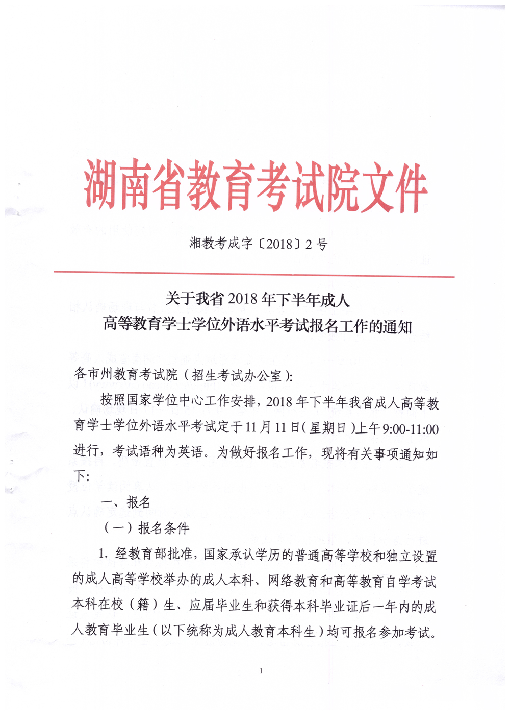 2018年下半年成人高等教育学士学位外语水平考试报名工作的通知