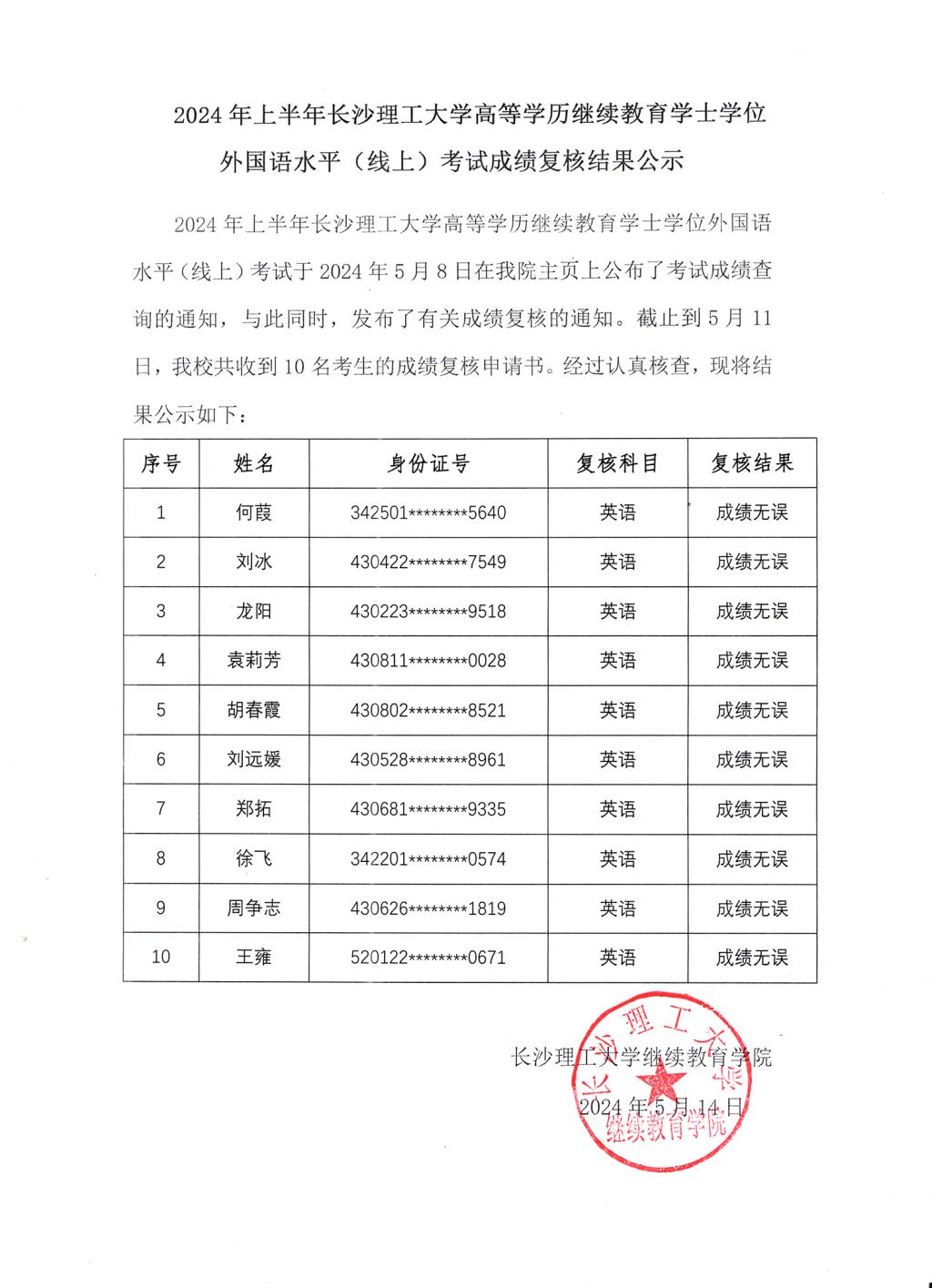 2024 年上半年伟德betvlctor1946源于英国高等学历继续教育学士学位外国语水平(线上)考试成绩复核结果公示