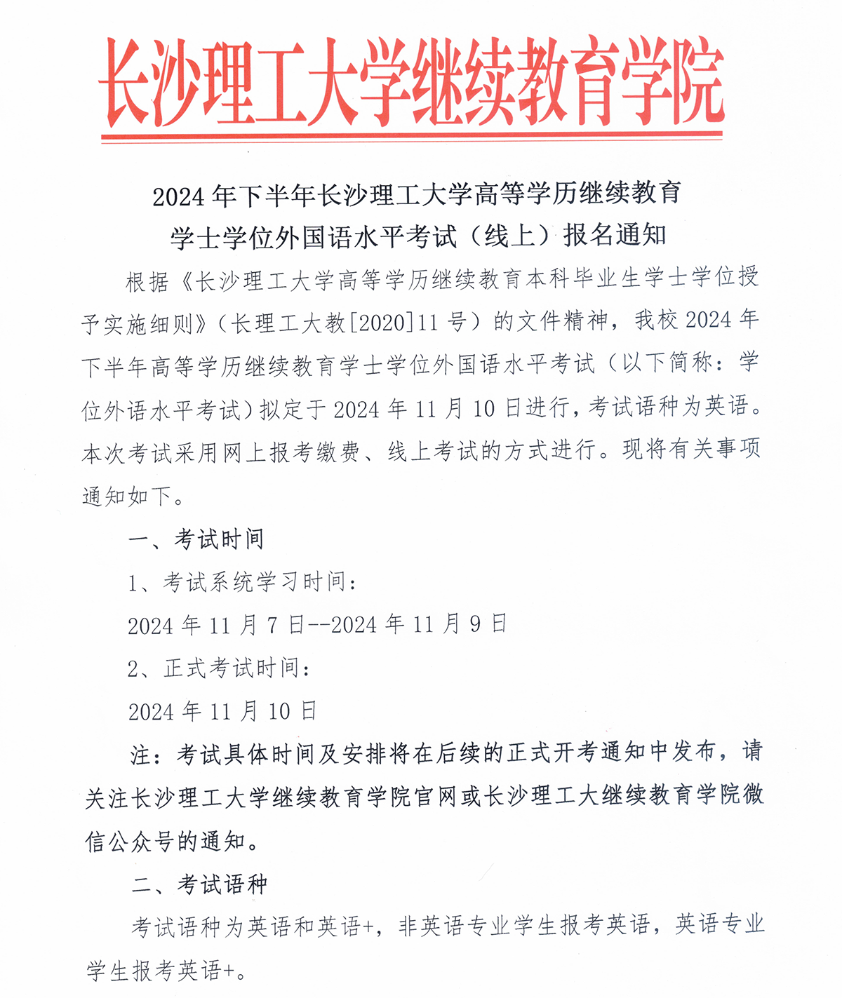 2024年下半年学位外国语水平考试(线上)报名通知