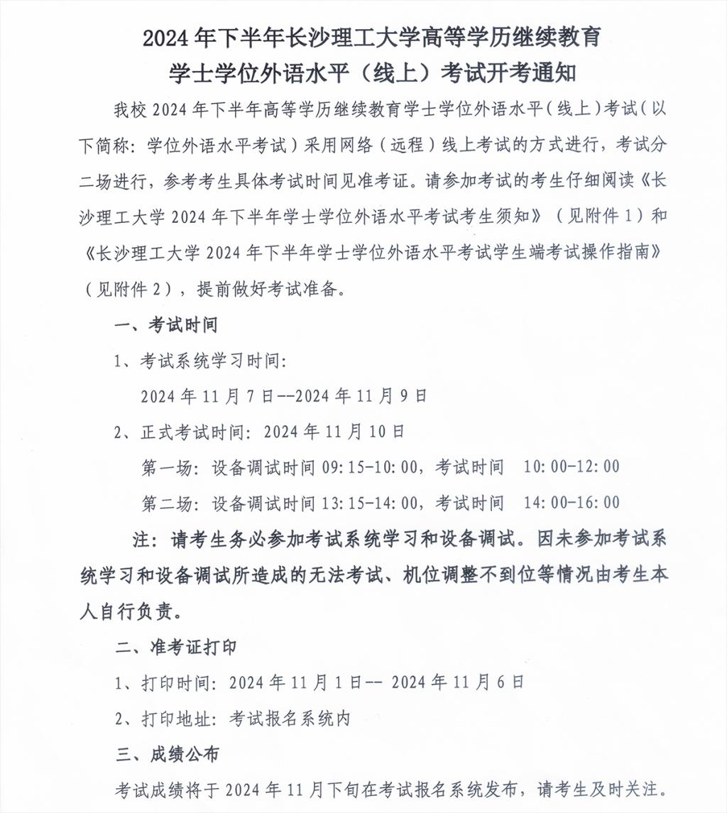 关于查询2024年下半年学士学位外国语水平(线上)考试成绩的通知