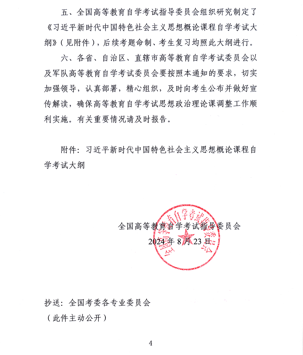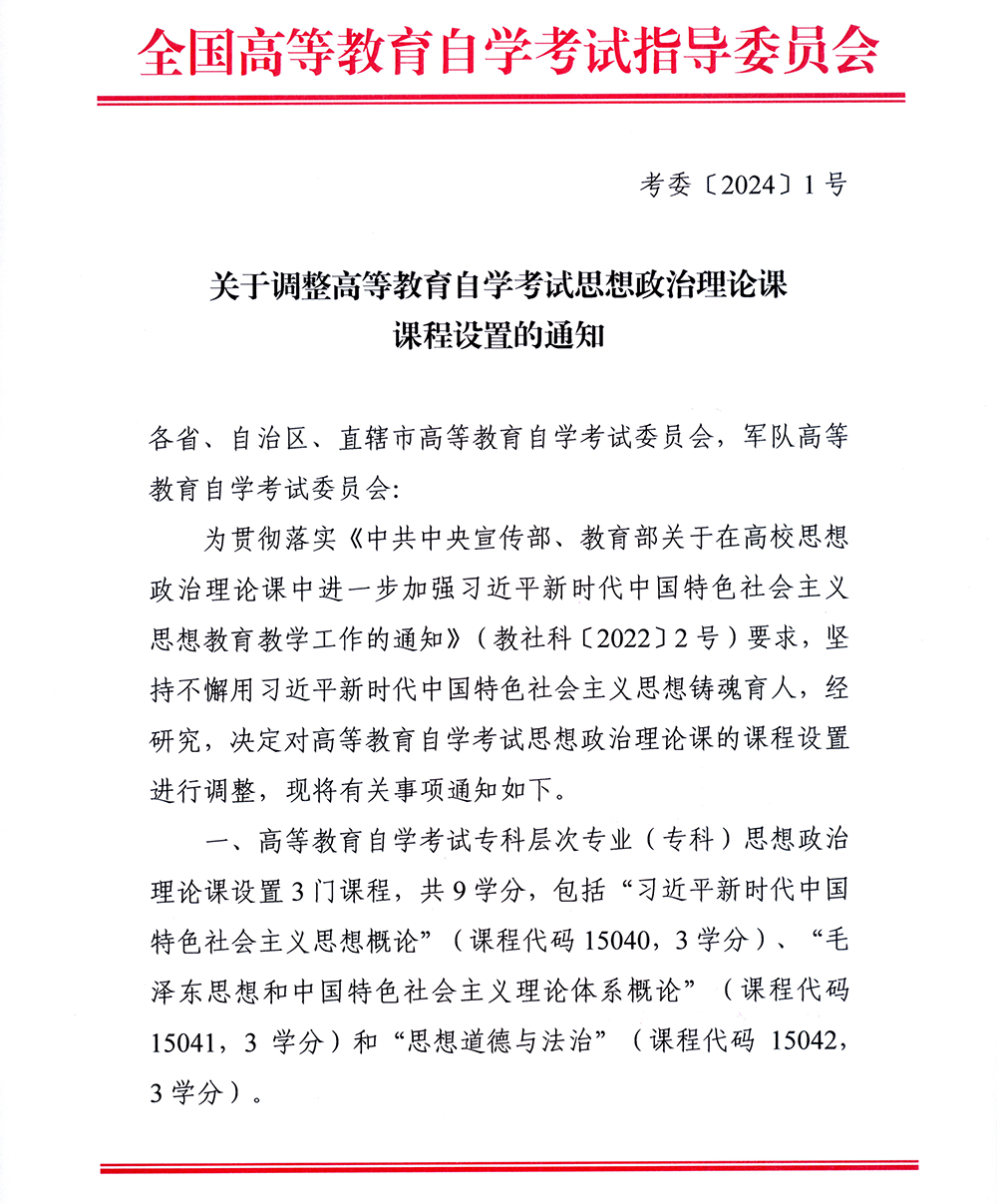 关于调整高等教育自学考试思想政治理论课课程设置的通知